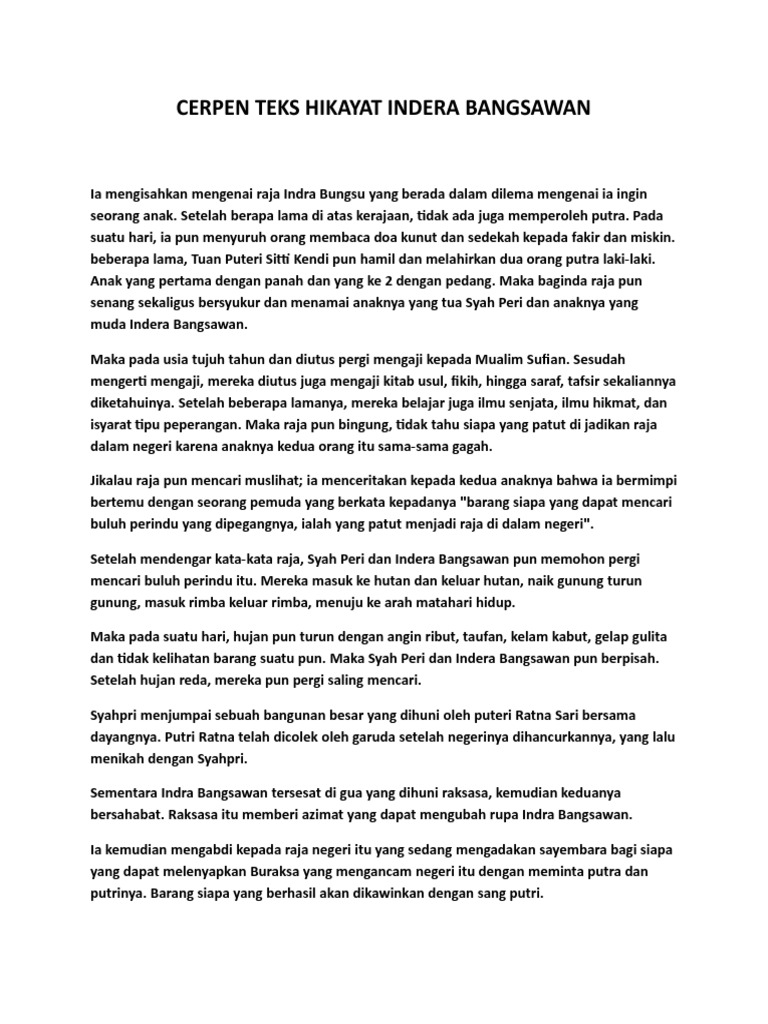 Tugas Cerpen Teks Hikayat Indera Bangsawan Pdf